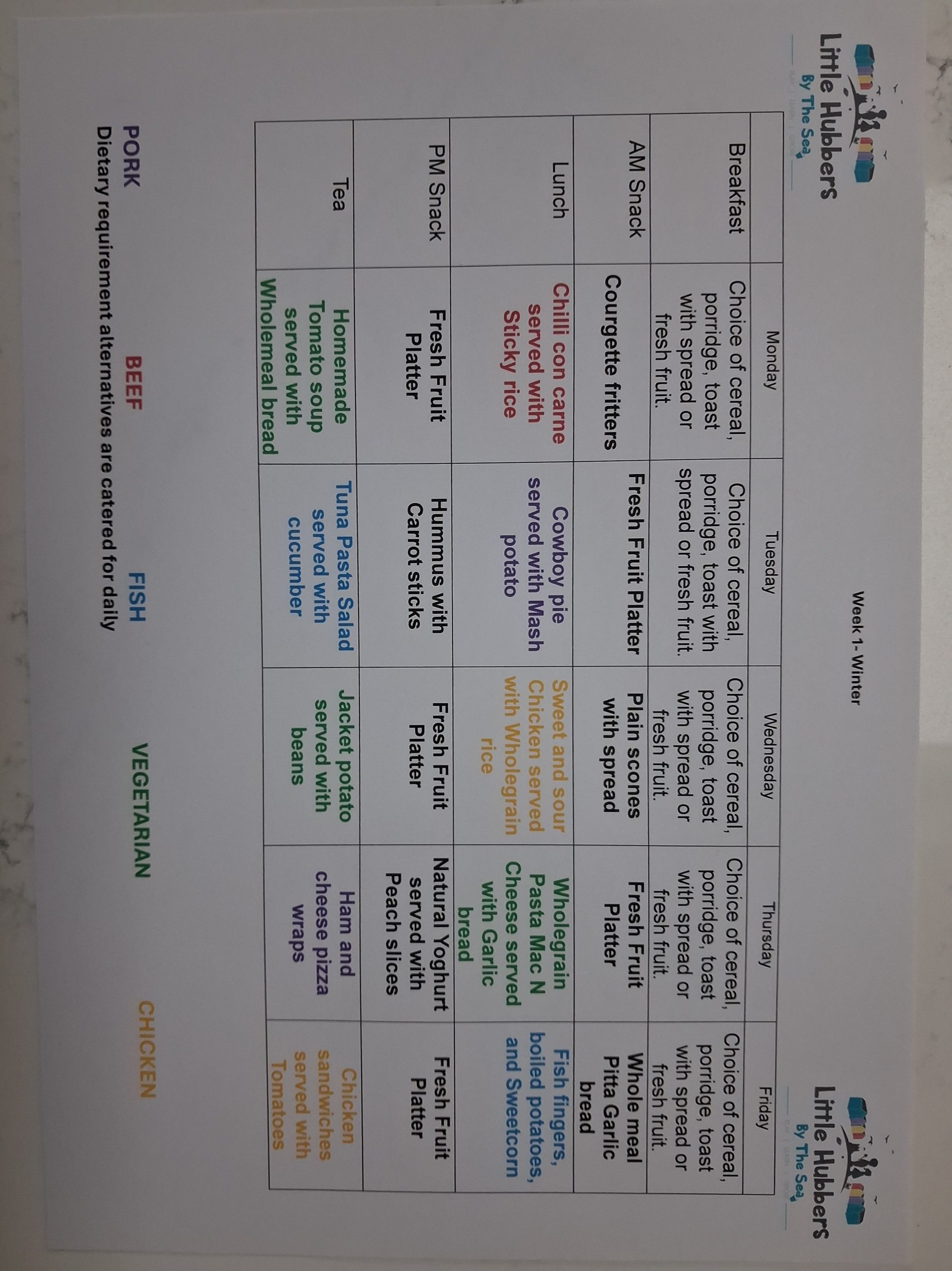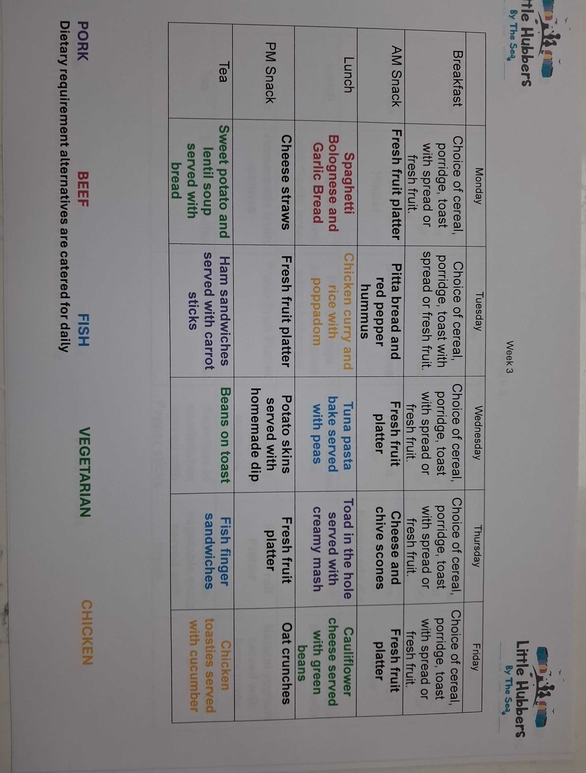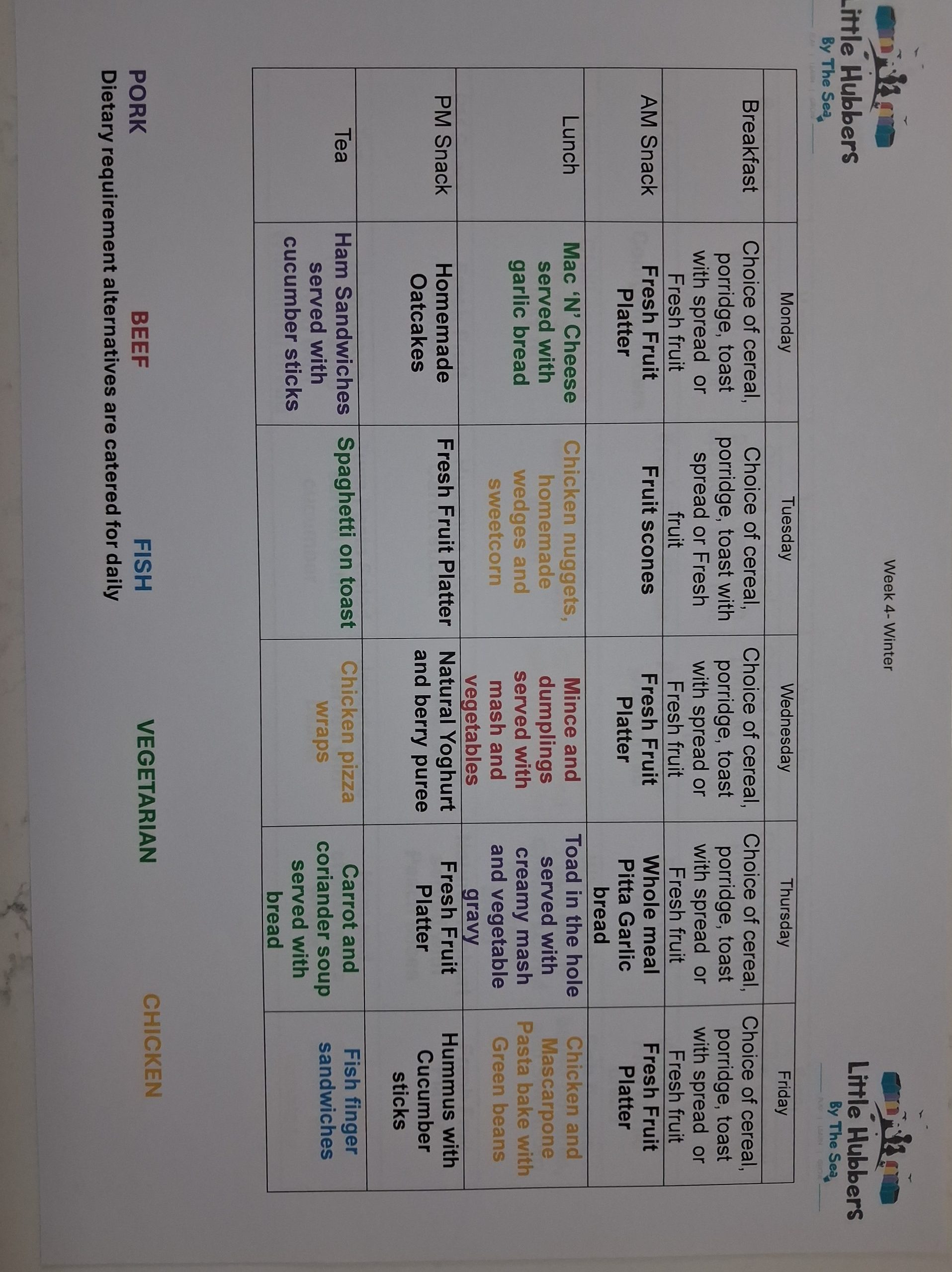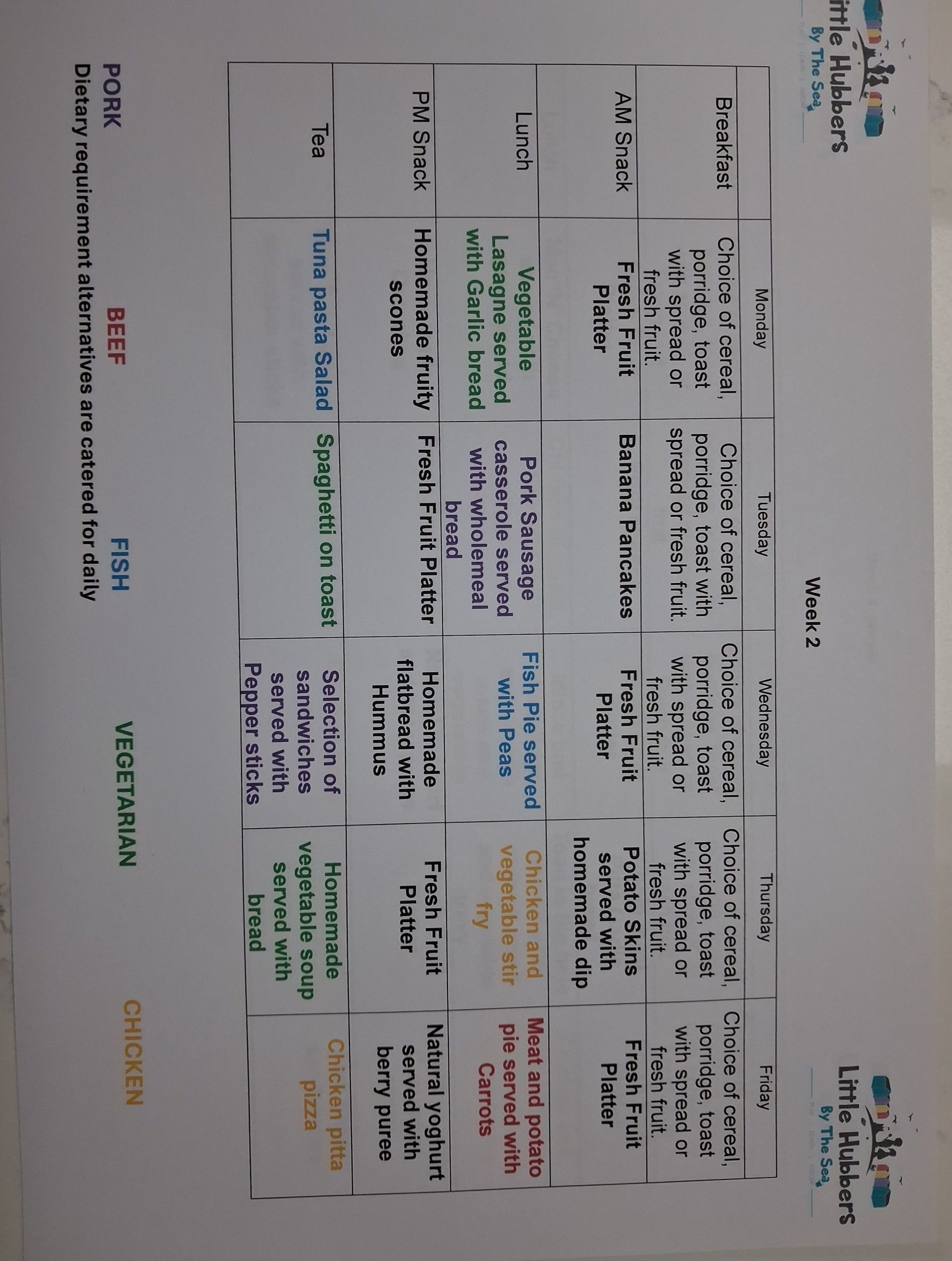We provide fresh and tasty breakfasts, lunches, dinners and snacks for every child at Little Hubbers Day nursery.